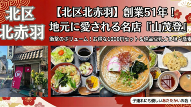 北赤羽で創業51年、地元民に愛されるお蕎麦屋さん「蕎麦遊坊 山茂登」のランチレポ!驚きのボリュームの1000円セットや、絶品の豆乳ごま坦々蕎麦、子連れに嬉しいサービスまで詳しく紹介します。大晦日の年越しそば情報もチェック!